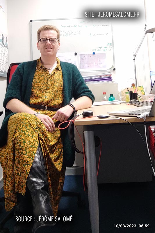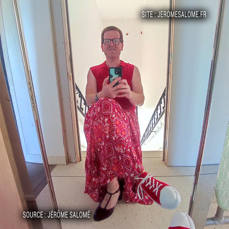Je m’appelle Jérôme SALOMé, homme porteur de vêtement dits « féminins » (jupe, robe, collants,…) depuis plus de 20 ans. Deux phrases résument bien mon état d’esprit :