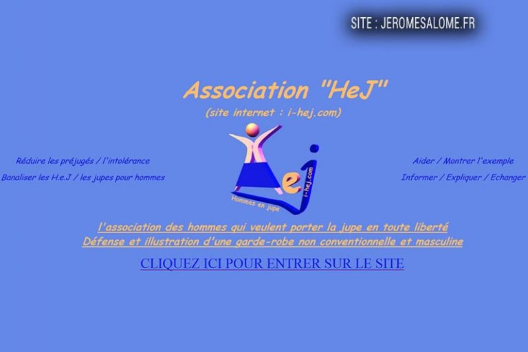 Dans le but de regrouper en un seul lieu toutes les informations concernant le port de la jupe par les hommes, j’ai créé en m’autoformant le site internet HEJ. Ensuite je l’ai fait évoluer en site communautaire que j’ai donné en 2007 à l’association HeJ.
