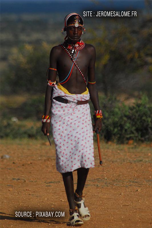 En Afrique, en Asie, les tenues masculines peuvent inclure couleurs, motifs, bijoux.