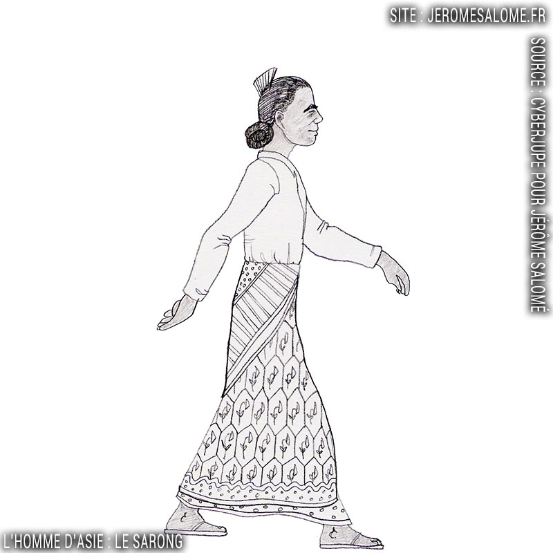 Le sarong est une pièce de tissu d’1 mètre de large (au moins) et où les 2 petits cotés sont cousus pour former comme un étui.