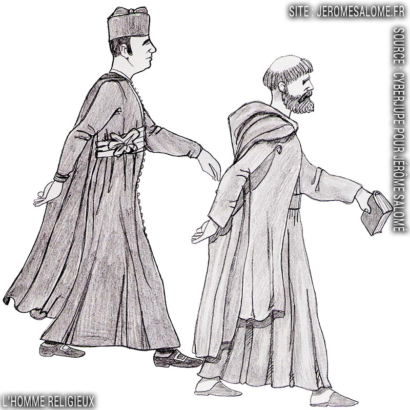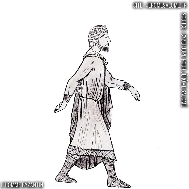 L’homme byzantin porte 2 tuniques superposées, longues ou courtes, selon les saisons ; sur un pantalon assez large.