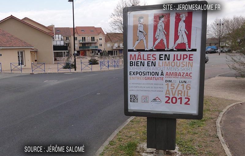 L’exposition « Mâles en jupe, bien en Limousin » est, à ma connaissance, une première en France, voire exceptionnelle au monde. Elle a eu lieu lors de sa première édition les 15 et 16 avril 2012 dans la commune d’Ambazac en Haute-Vienne.