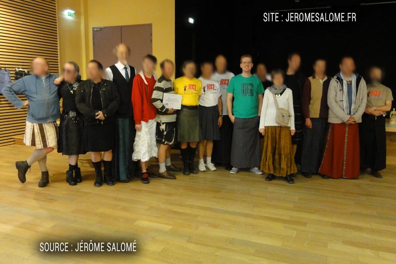 17 hommes porteurs de jupes de tous pays (Etats-Unis, Brésil, Ecosse, Irlande, Royaume-Uni, Pays-Bas, Belgique et plusieurs régions de France) ont acceptés de répondre à nos questions et de nous envoyer des photos d’eux. Les visiteurs ont pu les découvrir, lire leurs anecdotes, … en français et en anglais, comme par exemple Vincent qui nous explique pourquoi il a décidé de se marier en jupe.