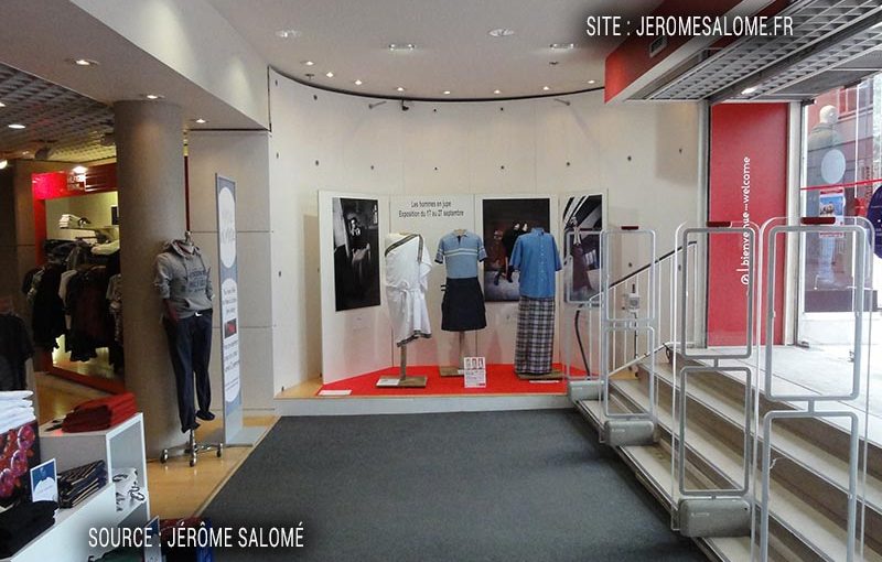 Le tout a été judicieusement placé à l’étage « Homme » du magasin, une partie à l’entrée place de la République et l’autre partie aux escalators permettant de naviguer d’étage à étage. Les clients ne pouvaient pas rater l’exposition, surtout qu’elle y est restée 10 jours.
