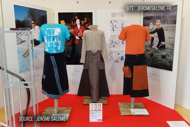 - trois jupes pour hommes réalisées par des étudiantes du lycée Le Mas Jambost de Limoges en partenariat avec le magasin de tissus Touchatou de Limoges..