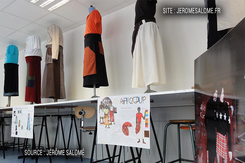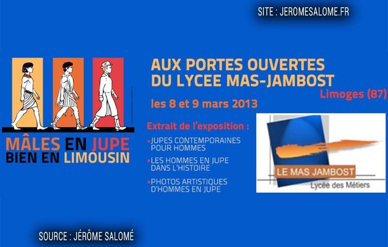 Comme vous avez pu le voir lors de l’exposition en avril 2012 à Ambazac, des étudiantes du lycée Le Mas Jambost de Limoges ont créé des jupes pour homme. Le lycée a décidé de mettre en valeur ce travail lors de ses portes-ouvertes 2013.