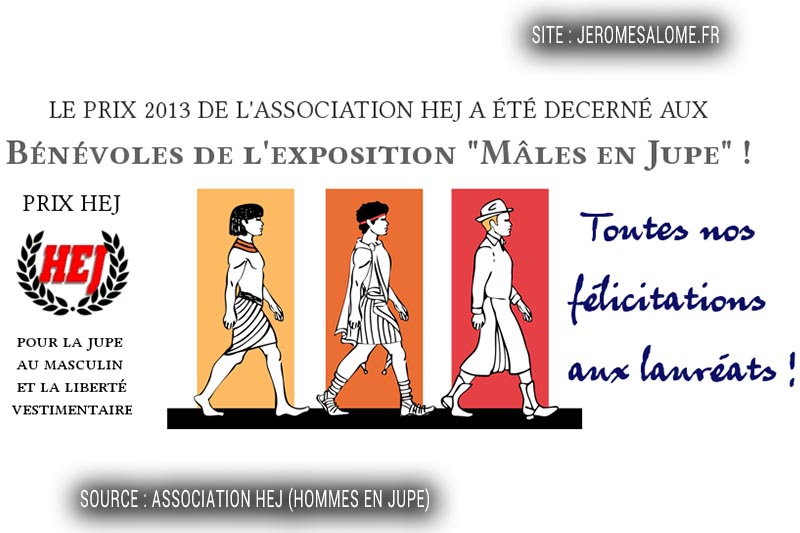 L’association HeJ (Hommes en jupe) créée en 2007 a décidé de décerner son « prix » pour récompenser la personne ou le groupe de personnes ayant le mieux contribué à promouvoir la jupe masculine et la liberté vestimentaire.