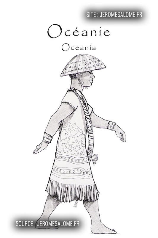 Les vêtements ont une fonction d’ornement. Le plus répandu est le pagne ou tapa fabriqué à partir d’écorce de mûrier séchée et collé avec de la sève. On retrouve ce vêtement à travers toute l’Océanie (Australie, Papouasie Nouvelle Guinée et Nouvelle-Zélande.) Nous avons trouvé aussi une représentation montrant un homme océanien dans une sorte de … Continuer la lecture de L’homme océanien